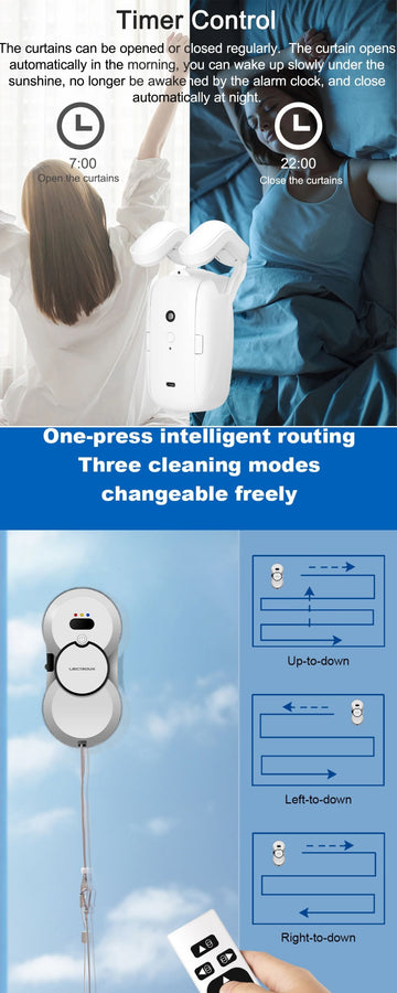 Discover the next level of automated curtain control with the Smart Curtain Control automaton and revolutionize your window cleaning routine with the Smart Robot Window Cleaner.