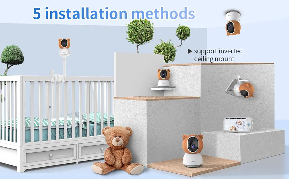 Stay connected and keep your baby safe with the KAWA Baby Monitor S7. Its large 5" IPS display coupled with 2K QHD resolution ensures crystal-clear visuals day and night. The monitor supports TF card storage for convenient playback and can connect up to 4 cameras for multi-room monitoring simultaneously. With features like 360° panoramic view, temperature alerts, instant sound alerts, soothing lullabies, and much more. the KAWA Baby Monitor S7 is the perfect companion for every parent. CE, RoHS, FCC approved for safety and compliance.