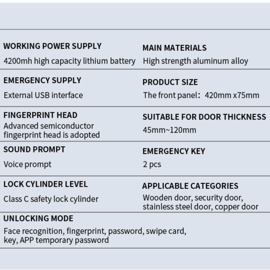 Elevate your home security with the 3D Biometric Intelligent Smart Door Lock with Camera. This cutting-edge smart lock offers a range of advanced features and access options to ensure the safety and convenience of your home.