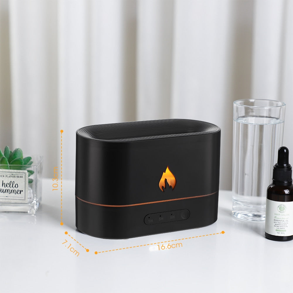 Elevate the atmosphere with our Flame Air Humidifier/Diffuser, a smart aromatherapy solution. Unwind with ultrasonic atomization, LED flame lights, and essential oil diffusion. Its intelligent power-off and quiet operation ensure a soothing experience. Embrace tranquility and optimal air moisture for a restful night's sleep.