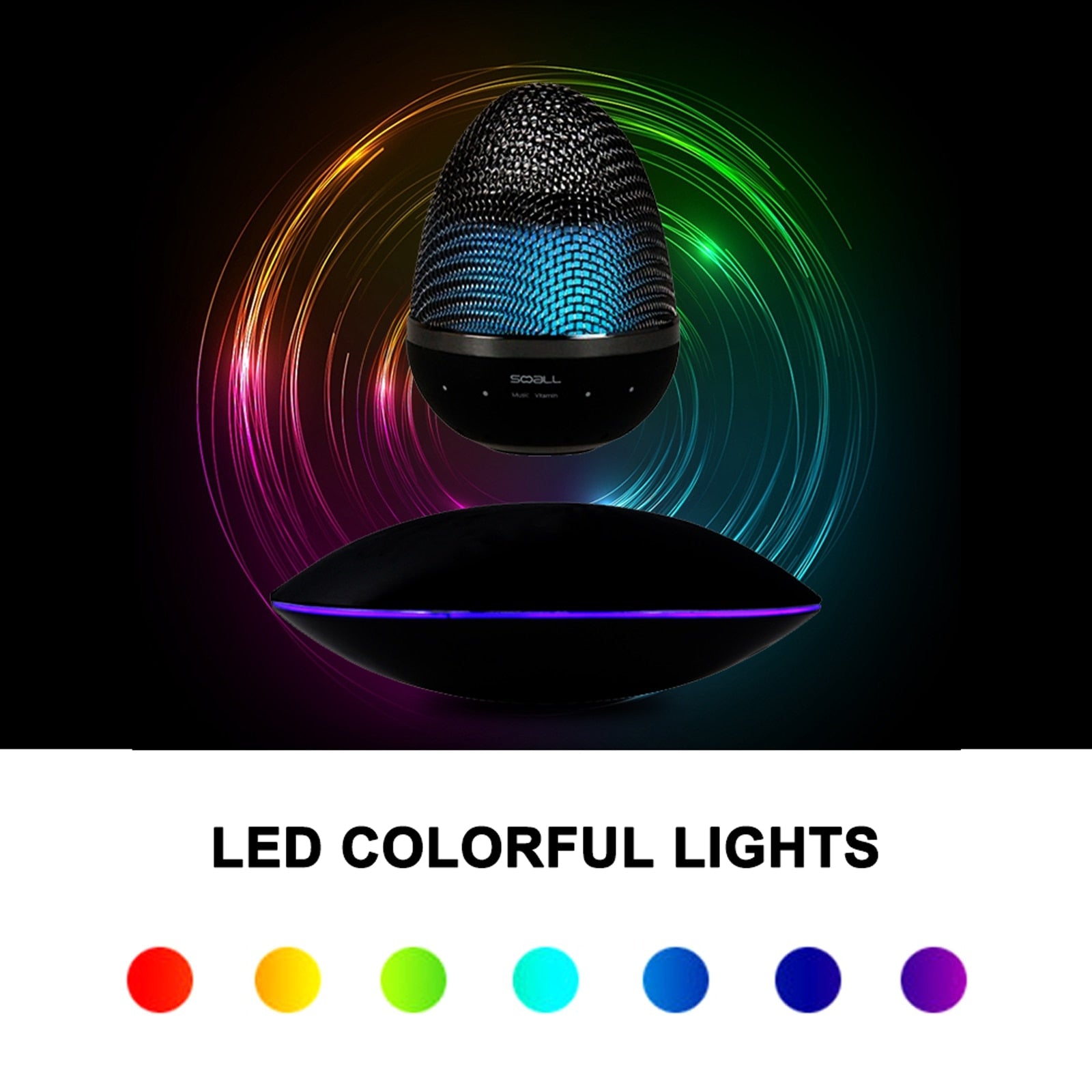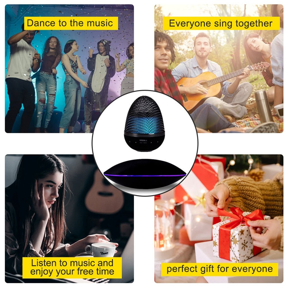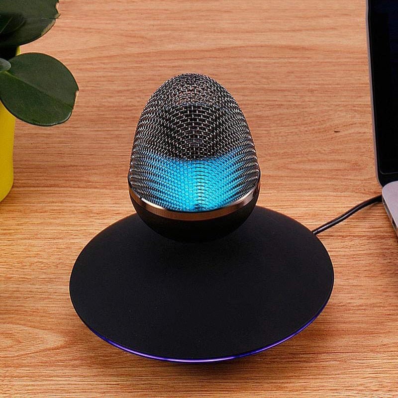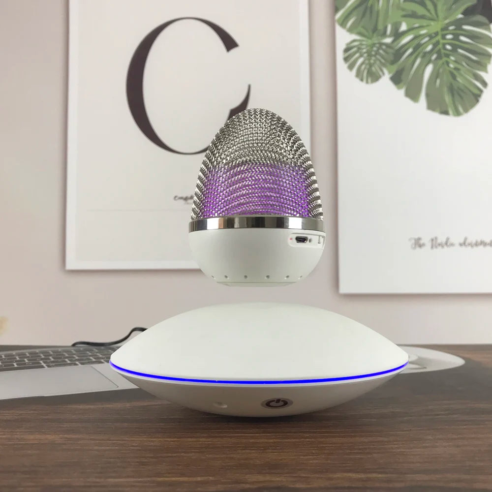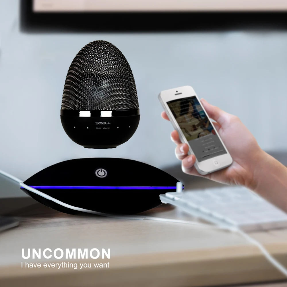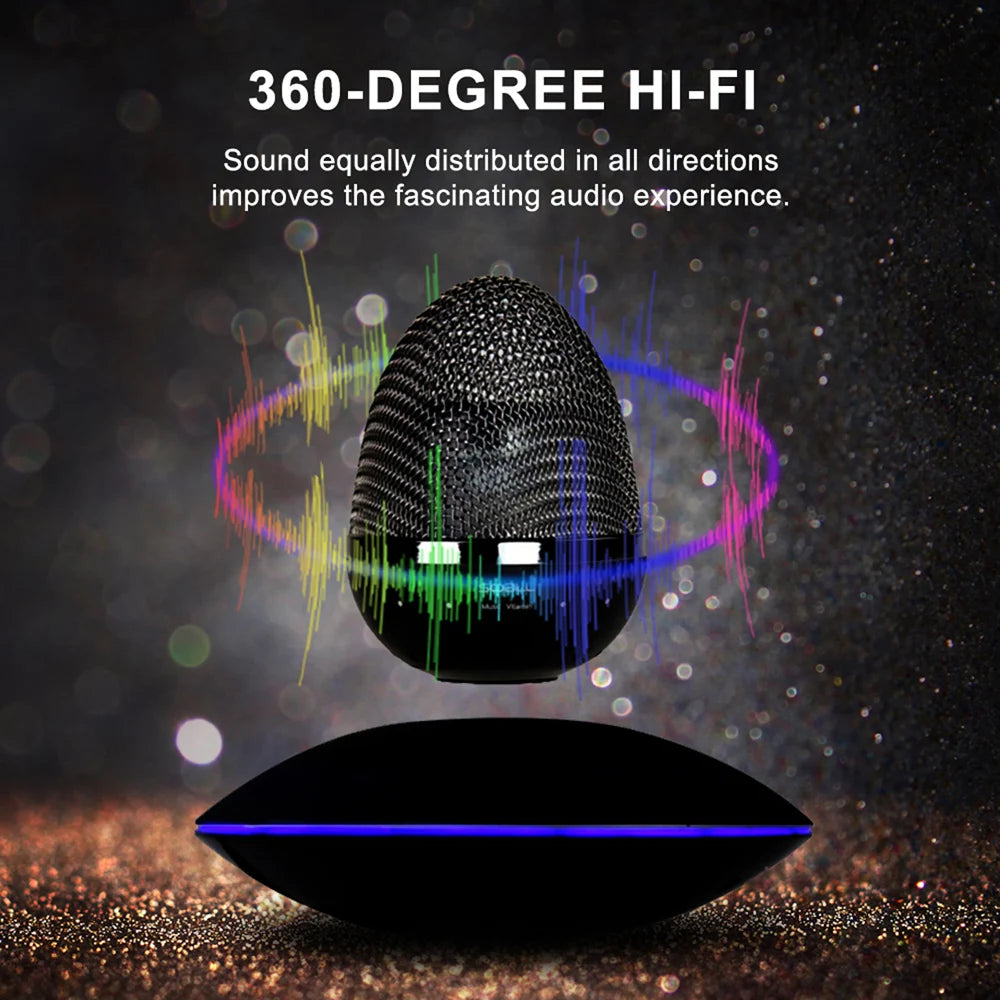 Elevate your music experience to new heights with this mesmerizing Floating Bluetooth Speaker. Its cutting-edge magnetic suspension technology allows it to effortlessly hover in mid-air, rotating 360° for a stunning visual and auditory spectacle. The built-in customizable LED light adds to the magic, creating a soothing ambiance or serving as a night light. With crystal-clear sound quality and 360° sound dispersion, it provides a concert-like experience. Its portability and case-friendly design make it easy to take anywhere, and its meticulous craftsmanship ensures both longevity and modern elegance. Bring a touch of innovation and style to your home with this gravity-defying speaker.
