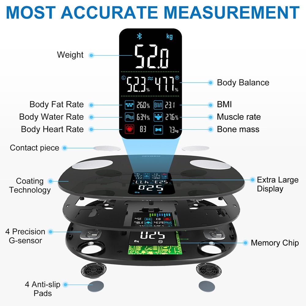 Intelligent Analysis, Bioimpedance Body Fat, Fitdays App Sync, FDA Approved