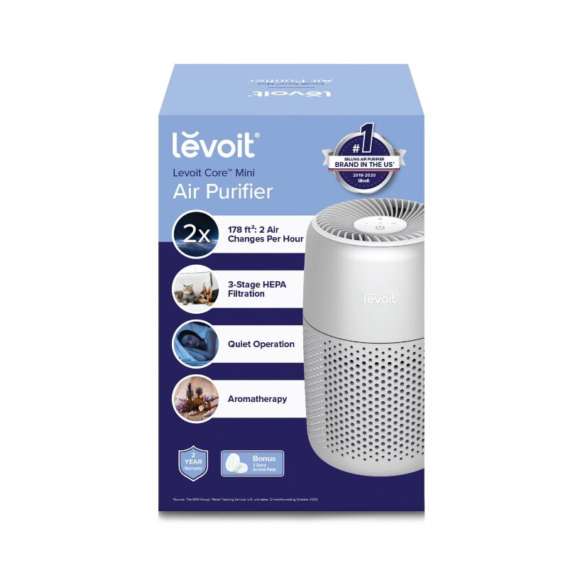 Create a healthy living environment with the compact Levoit Core™ Mini Air Purifier. This portable purifier features 3-Stage Filtration, aromatherapy, and fast clean air delivery. Enjoy fresh air in rooms up to 178 ft2, while its quiet operation and one-touch controls make it convenient and easy to use. Improve your sleep, reduce allergies, and eliminate odors with this sleek and stylish air purifier.