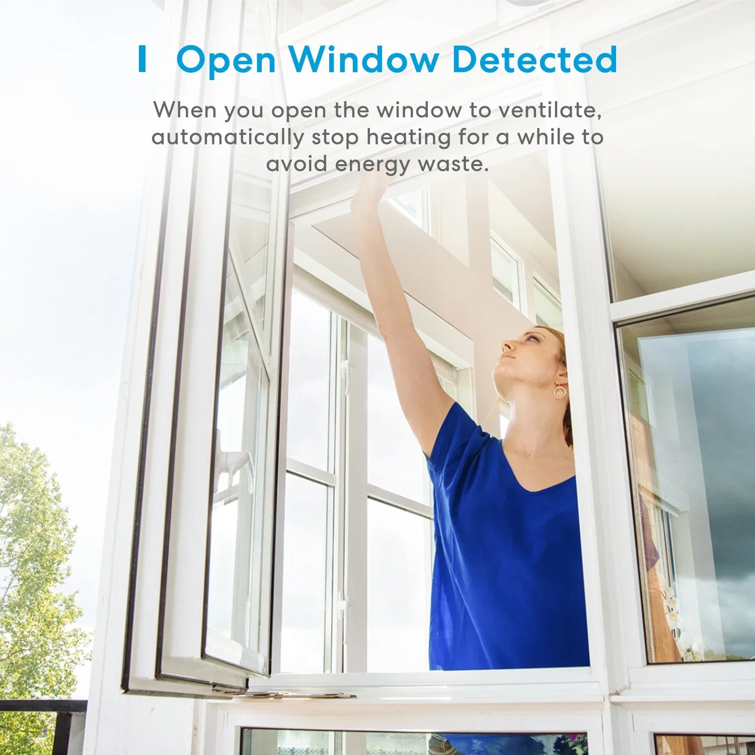 The Meross Smart Thermostat weekly programmable settings offer tailored temperature adjustments throughout the day. Benefit from the memory function that retains data during power outages and the open window detection function that automatically halts heating, contributing to substantial energy savings. Track your power consumption in real-time and live a low-carbon life with the built-in energy monitor, accessible through the Meross app.