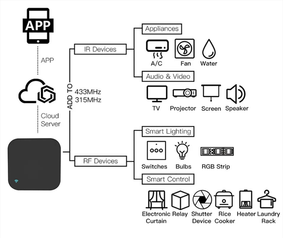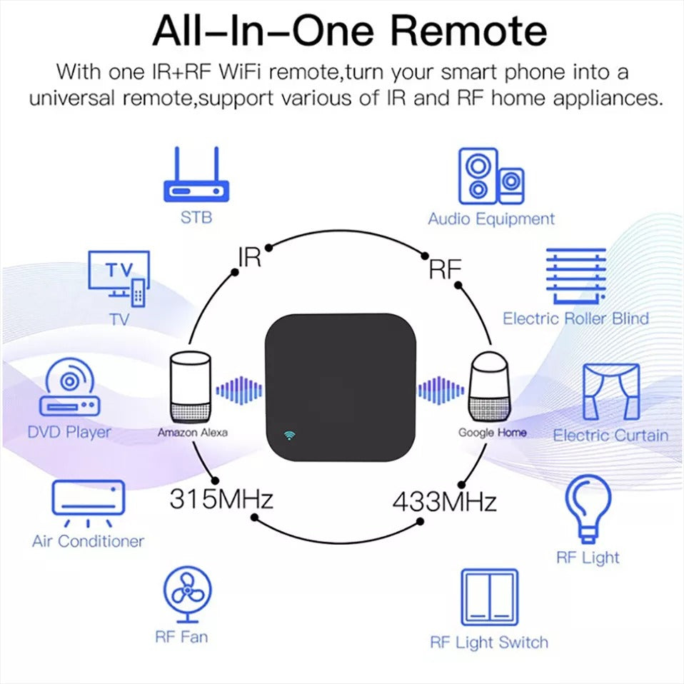 This intelligent device revolutionizes home automation by turning your smartphone into a powerful universal remote control. With compatibility for a wide range of devices, including TVs, air conditioners, lights, and more, it simplifies your life by consolidating all your remotes into one. What sets it apart is its support for both RF and IR devices, making it highly versatile. Plus, voice control compatibility with Amazon Alexa and Google Home allows for convenient hands-free operation. Whether you want to schedule appliance control or create customized smart home scenes, this controller offers the ultimate convenience and automation.